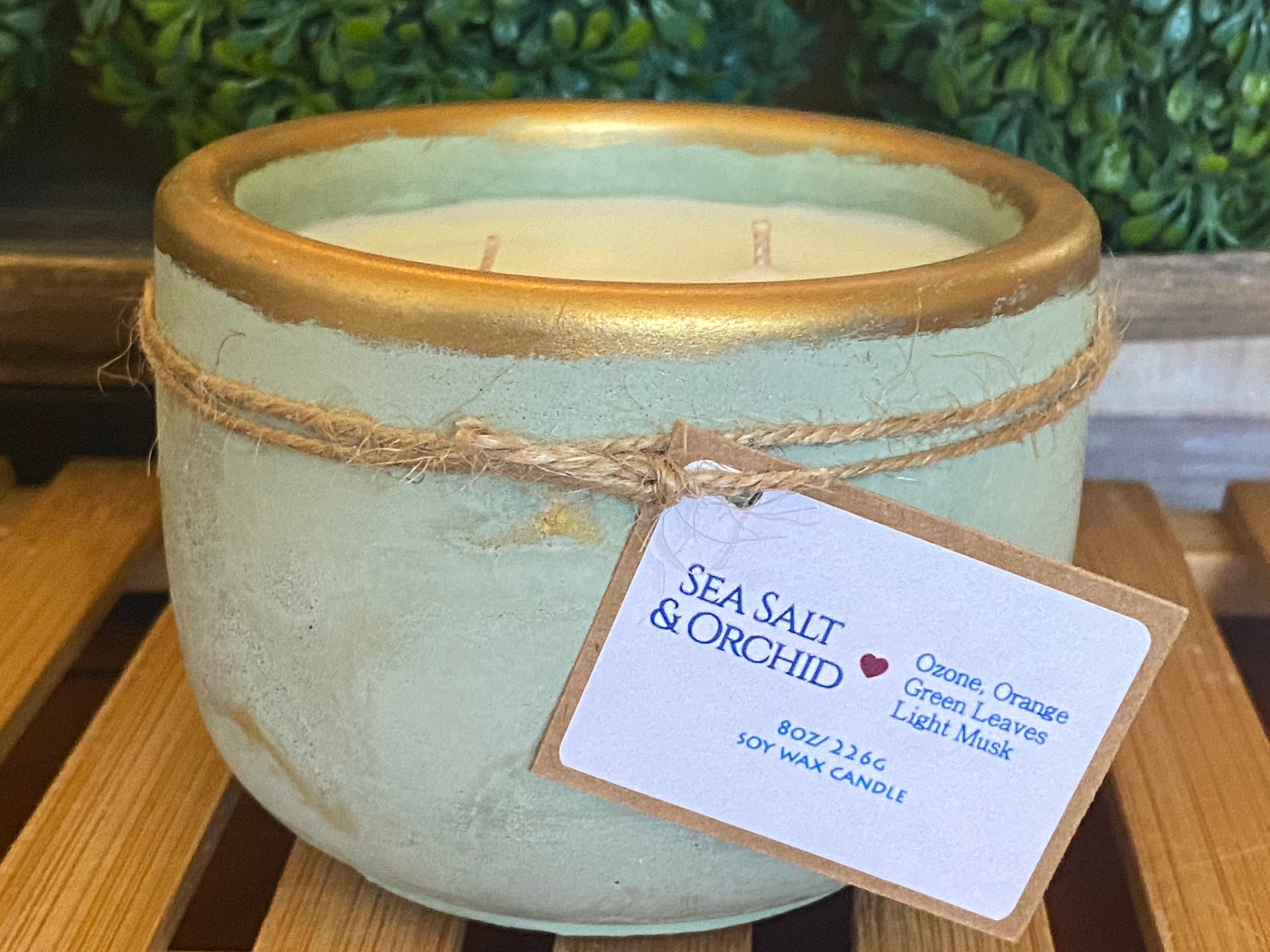 All our luxury soy candles are handcrafted from clay or concrete. All are poured with high quality soy wax blends, organic wicks and skin safe, intoxicating fragrances: free from phthalates, parabens and carcinogens.