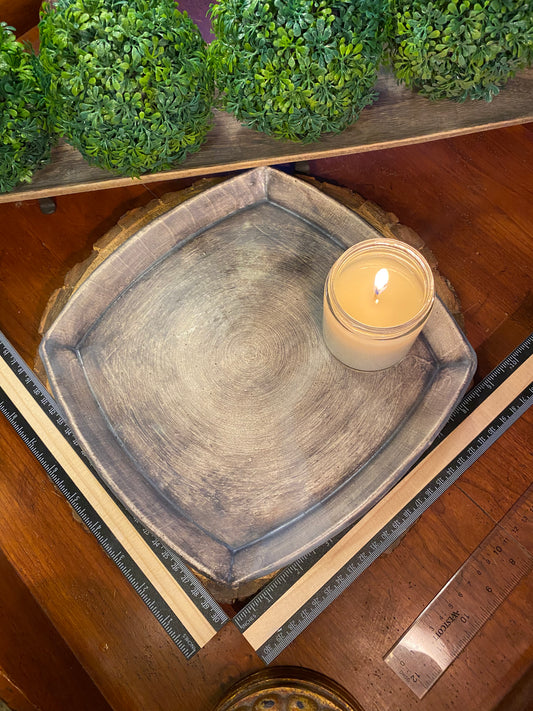 Handcrafted, Unique, Pottery Plate- Medium Square, Large Gray Circle