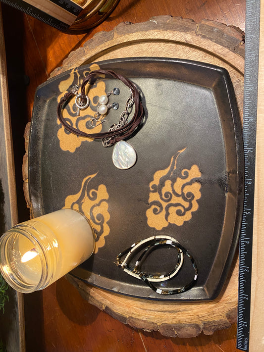 Handcrafted, Unique, Pottery Plate- X-Large Square Brown/Tan Asian Cloud