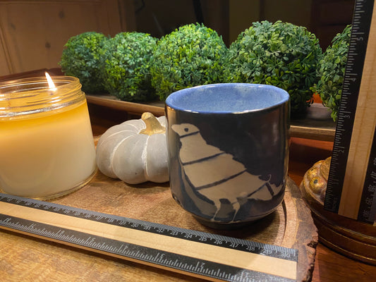 Handcrafted, Wheel-Thrown Container Candle- Medium Blue/Black Raven Vessel- 9oz Luxury, Long-Burning Soy Wax- Phthalate Free Fragrance