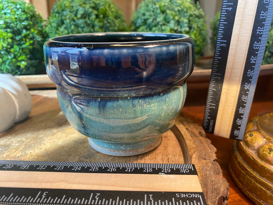 A Handcrafted, Wheel-Thrown Container Candle- Small, Glazed Two-Tone Vessel, Blue and Aqua- 8oz Luxury, Long-Burning Soy Wax- Phthalate Free Fragrance