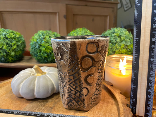 Handcrafted, Wheel-Thrown Container Candle- Large Angled Vessel w Unique Side Designs- 15oz Luxury, Long-Burning Soy Wax- Phthalate Free Fragrance