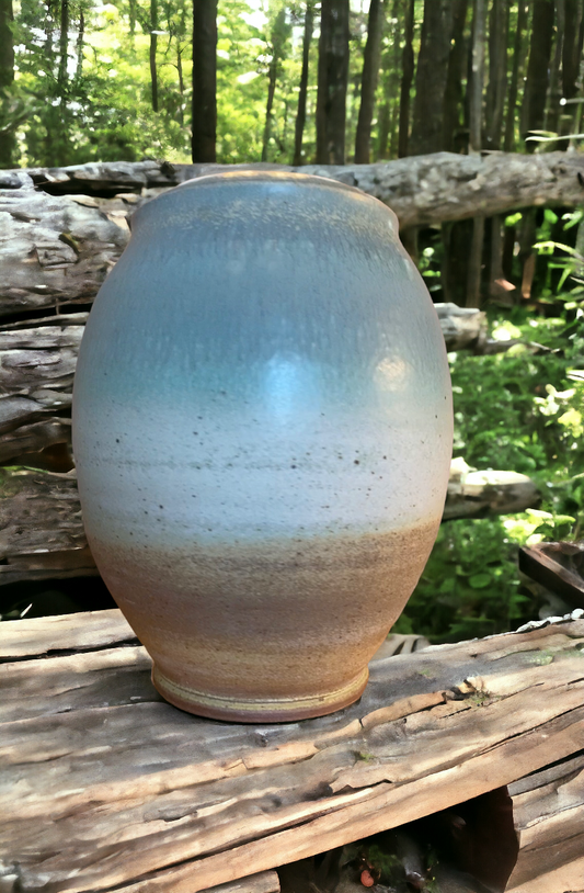 Wheel-Thrown Pottery Art Piece/Vase- Beautiful Earth Tones- Sunset Sky Blue, Creams and Browns, Dimensions: 13h"x10w"