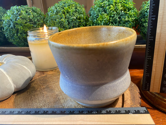 Handcrafted, Wheel-Thrown Container Candle- Medium Cream/Purple Vessel w Tan Rim- 10oz Luxury, Long-Burning Soy Wax- Phthalate Free Fragrance